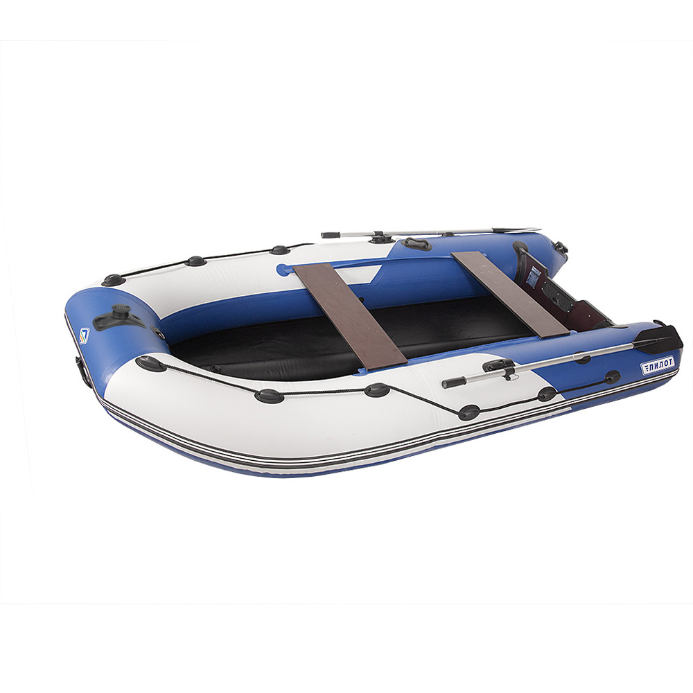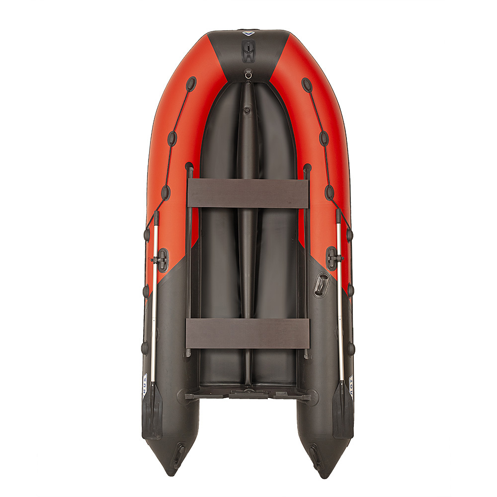 Дополнительный комфорт в использовании вам создадут наружная и внутренняя накладка под мотор на жестоком транце, 3 ручки с намоткой для переноски, ручка шкипера, кольцо для фиксации канистры бензина, привальный брус с отбойником, усиление дна ПВХ профилем шириной 60 мм по баллонам и килю , а так же усиление на баллонах под боковой алюминиевый стрингер.