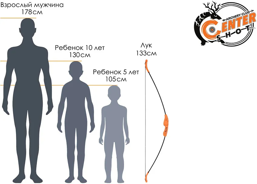 - Длина лука с тетивой: 133 см