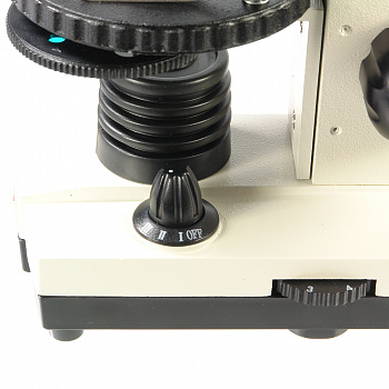 - Осветители работают от сети 220 В (через адаптер, который входит в комплект) и от батареек, что дает возможность использовать микроскоп и дома, и в учебном классе, и в полевых условиях.