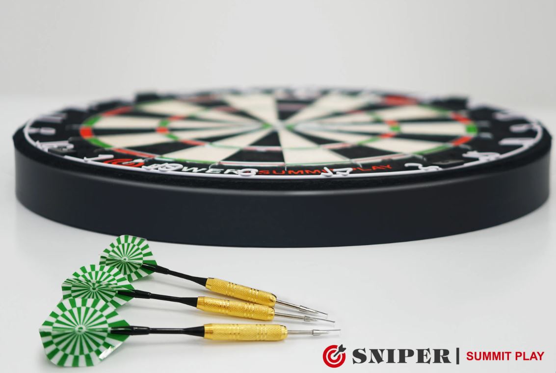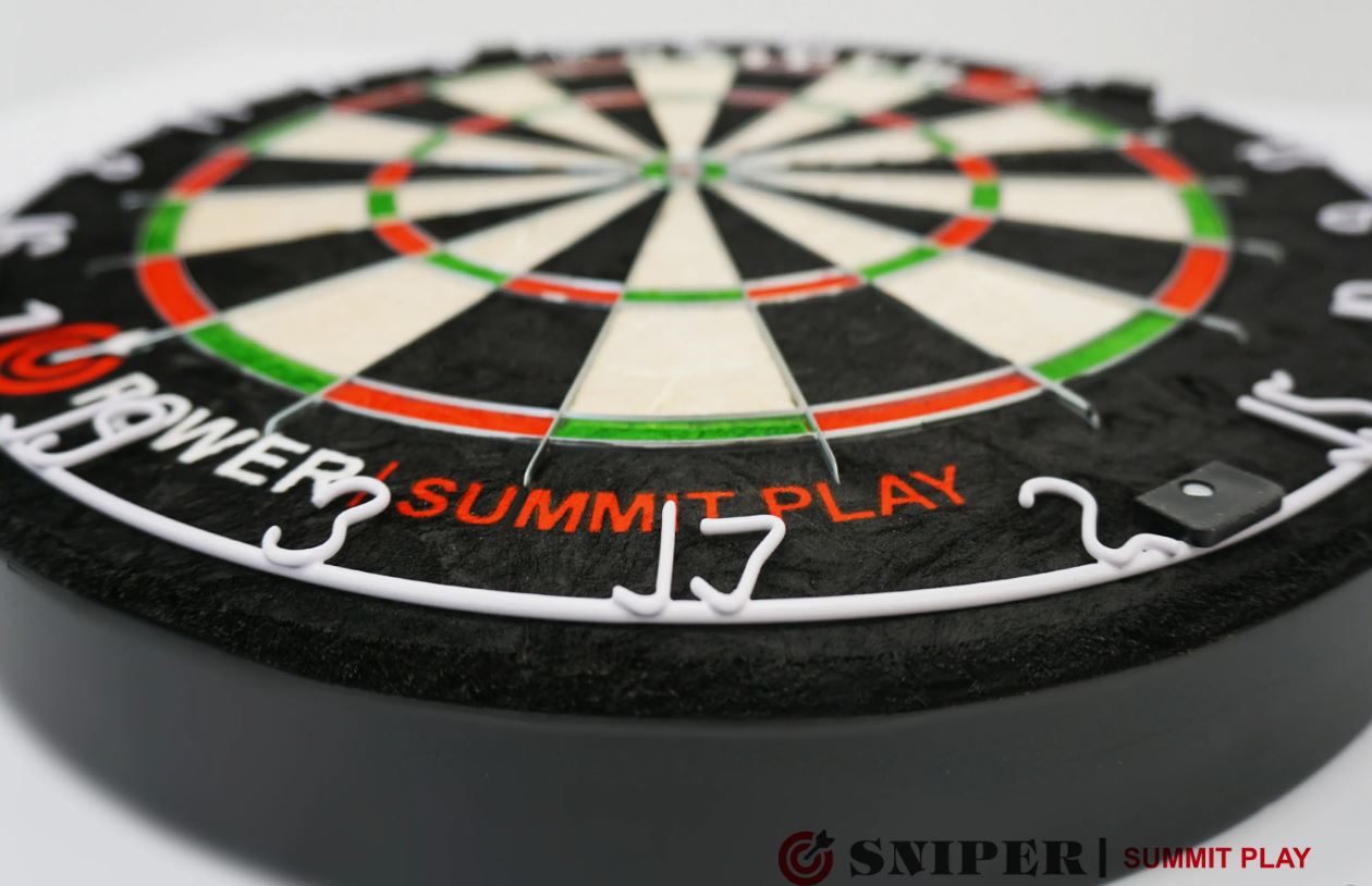 SNIPER Summit Play Power - дартс суперпрофессионального уровня, соответствующий турнирным требованиям. Мишень дартса SNIPER Summit Play Power изготовлена из кенийского сизалевого волокна высочайшего качества, что увеличивает срок службы дартса от бренда SNIPER по сравнению с другими производителями. Плотные волокна крепко захватывают дротик, не оставляя следов после извлечения. Границы секторов разделены тонкими, как лезвие ножа, пластинами, что снижает риск отскока, так как дротики реже попадают по металлической окантовке. SNIPER Summit Play Power оснащен вращающимся кольцом нумерации.