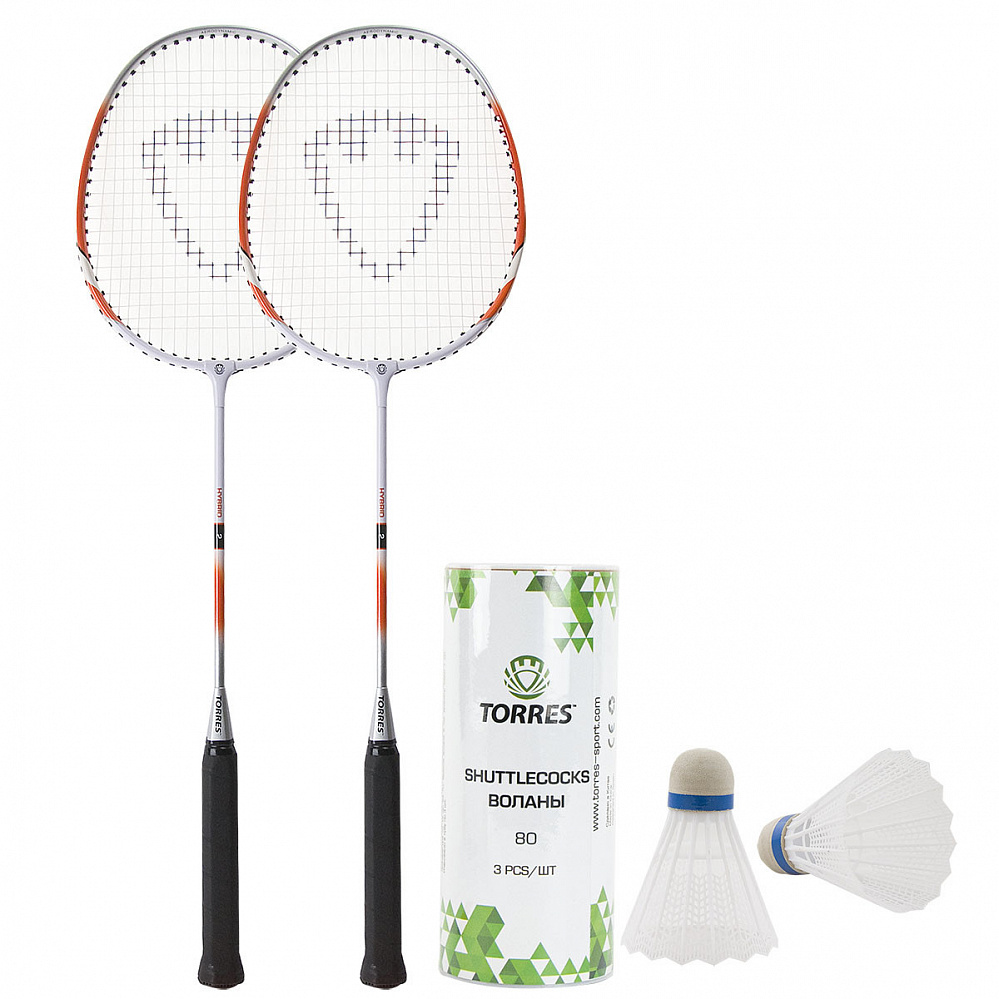 В набор входят две ракетки жесткой конструкции состоящей из алюминиевого обода и стального стержня, соединенных между собой через тройник. Три волана любительского уровня из пластика.