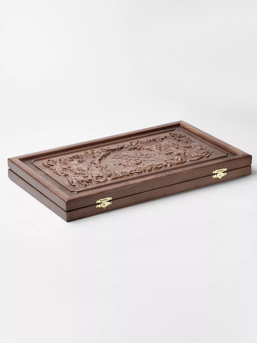 Подарочные деревянные нарды из массива бука с объемной резьбой оснащены немецкой фурнитурой, которая прослужит не одно десятилетие!
