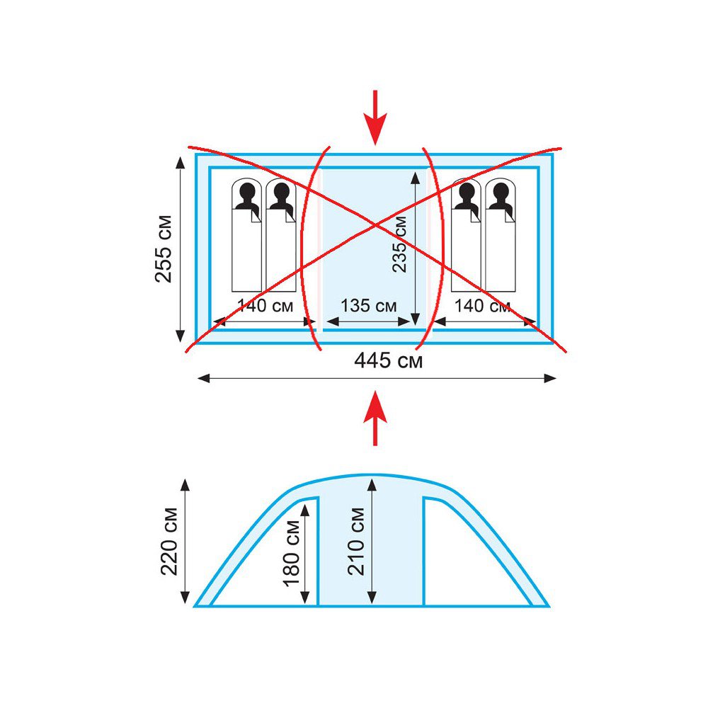 - Внутренний размер (ДxШxВ) 235х140х210 см
