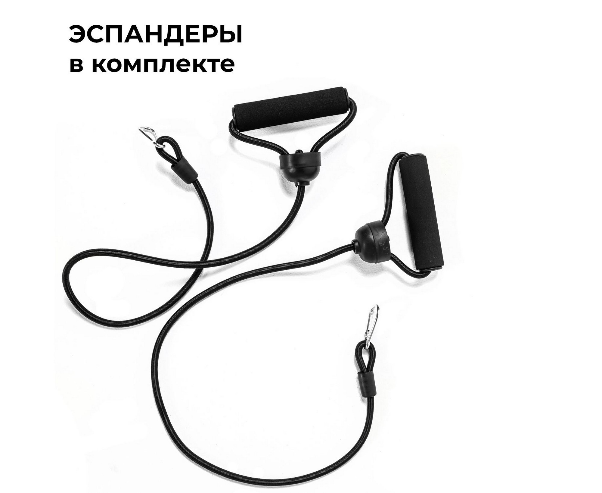 В КОМПЛЕКТЕ: 2 эспандера, которые крепятся к раме тренажера с помощью карабинов.