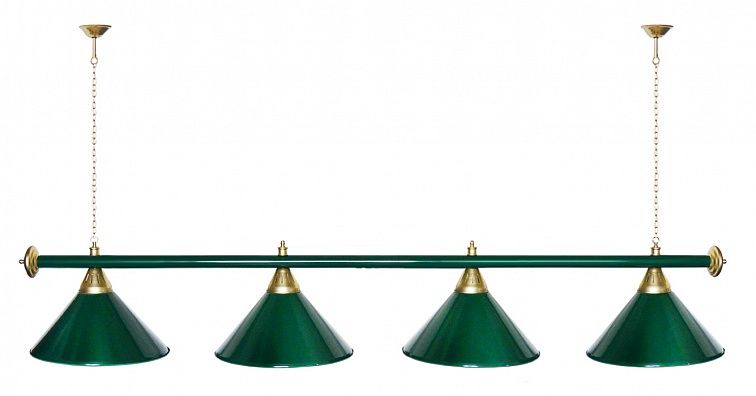 Лампа Startbilliards (одинарная зеленая штанга), 4 плафона, № 4, зеленая.