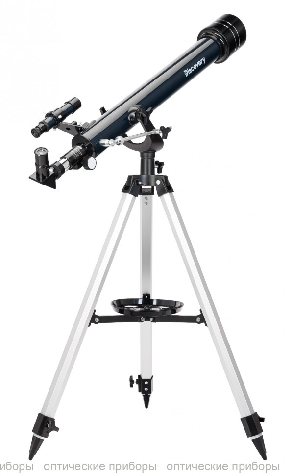 Discovery Spark 607 AZ – не просто рефрактор, а рефрактор-ахромат: в нем скорректированы цветовые искажения. В сочетании с качественной стеклянной оптикой и покрытием с антибликовым эффектом это дает яркую, четкую, хорошо читаемую картинку астрономических объектов. За точное наведение на небесные тела отвечает вилочная монтировка азимутальной ориентации, дополненная винтом на вертикальной оси. Тренога и труба телескопа выполнены из металла, высоту треноги можно регулировать в широком диапазоне.