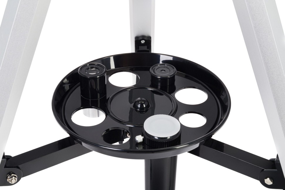 Тренога выполнена из алюминия, она надежна и устойчива. Высоту ножек можно регулировать, есть полочка для аксессуаров. Обратите внимание: несмотря на то, что Levenhuk Blitz 70 BASE – модель начального уровня, в ней используется фокусер 1,25 дюйма. Это означает, что на телескоп можно устанавливать большинство оптических аксессуаров, которые широко представлены в продаже. С их помощью можно расширить свой наблюдательный опыт и приумножить возможности телескопа.