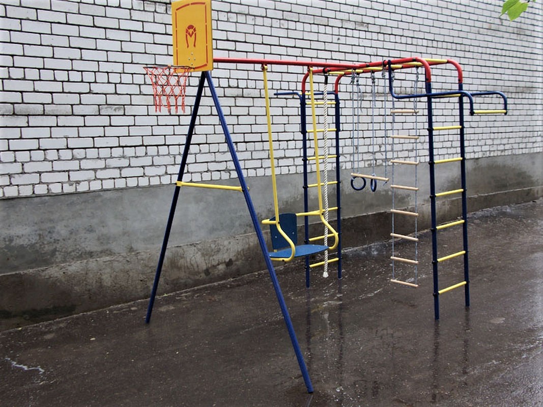 Дополнительное навесное оборудование: Лестница веревочная, трапеция , щит баскетбольный, сетка для лазания.