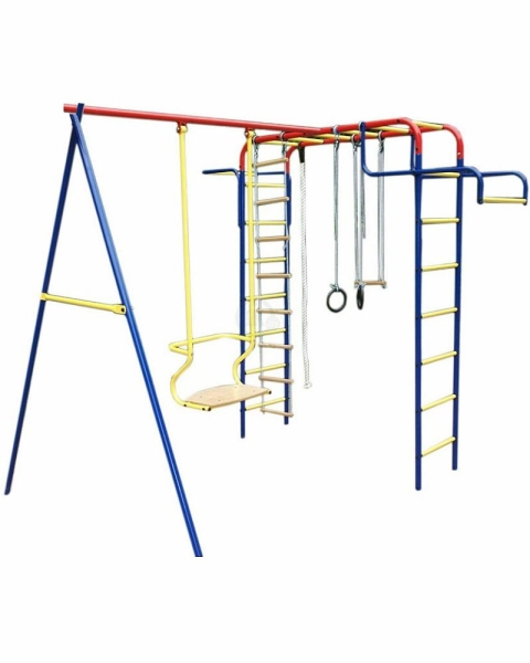 Дополнительное навесное оборудование:лестница веревочная, трапеция, щит баскетбольный, сетка для лазания.