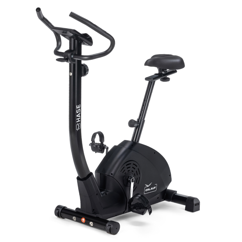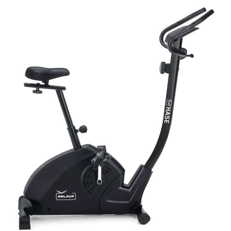 - Лаконичный и мощный. Orlauf Hase — вертикальный велотренажер без лишних деталей и функций. Это идеальная модель для тех, кто привык идти к своей цели и не готов к компромиссам. Максимальный вес пользователя — 130 кг. У велотренажера магнитная система нагружения, благодаря этому его не надо подключать к сети. Предусмотрено 8 уровней нагрузки, для регулировки есть барашек на рулевой стойке.