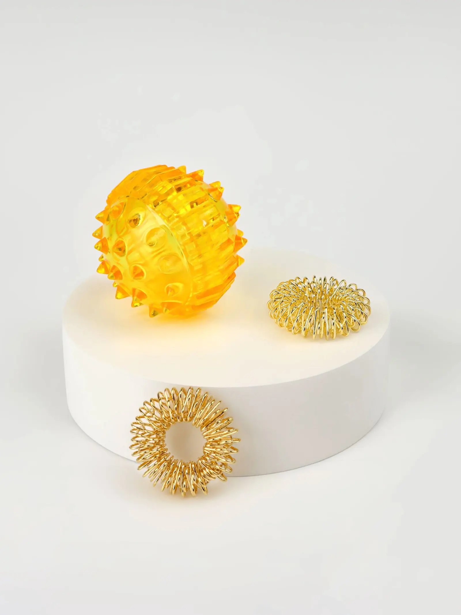 Массажер пластиковый универсальный Шарик с 2 кольцами желтый 10419979