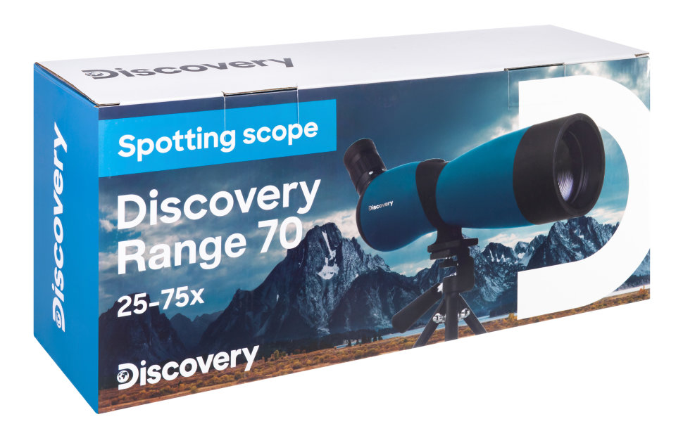 Зрительная труба Discovery Range 70 обладает мощным увеличением, которое можно регулировать в диапазоне от 25 до 75 крат, благодаря чему удобно быстро переводить взгляд с общей панорамы на детали отдельного удаленного объекта и обратно. Прибор прекрасно подходит для изучения дикой природы, наблюдений за протяженными территориями, выслеживания дичи с вышки и многого другого. Сам прибор достаточно небольшой и легкий, поэтому его удобно брать с собой в пешие походы и в длительные поездки.